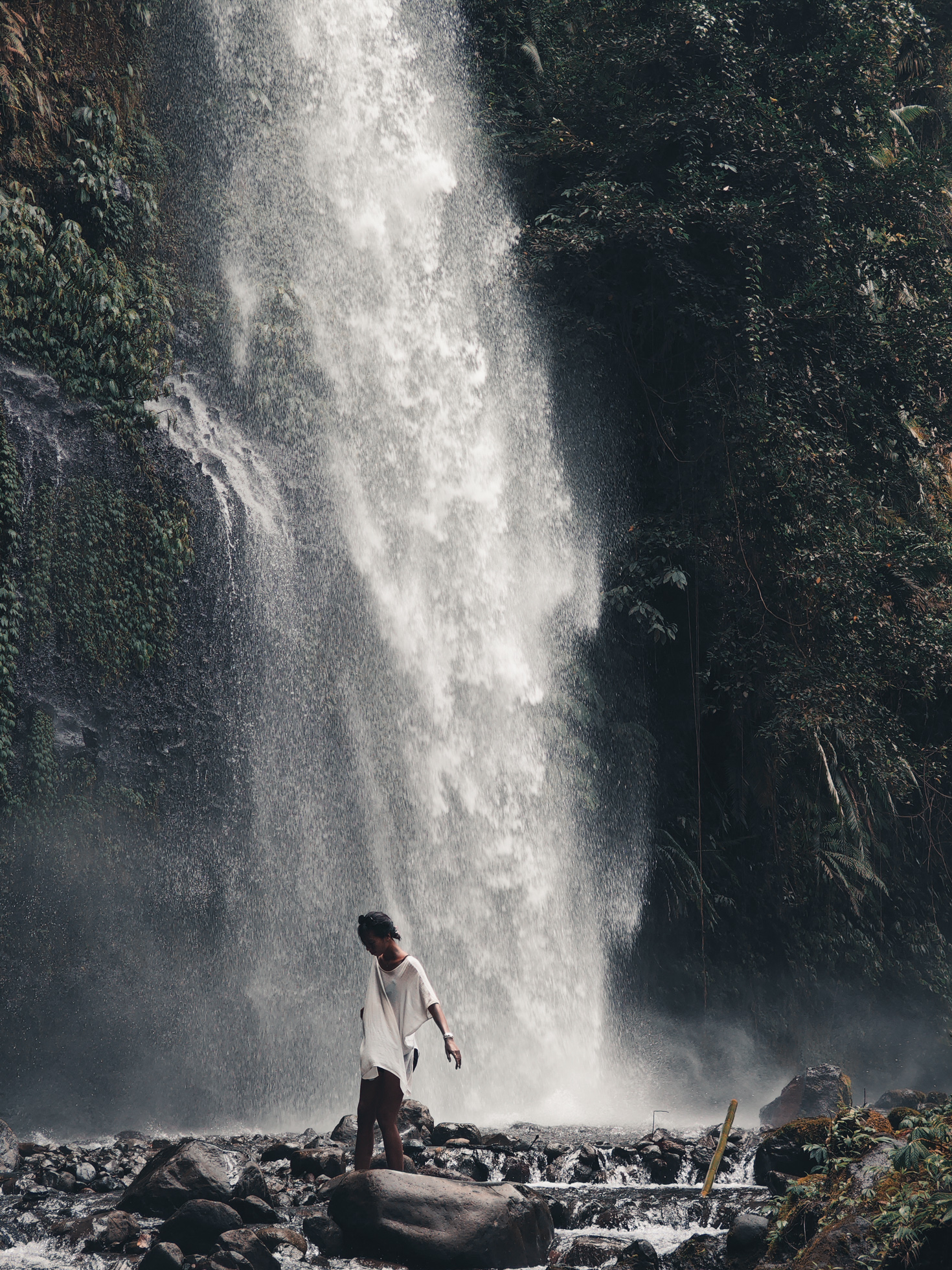 Due to the limited remaining time, we stayed in the north of Lombok and explored the Sendang Gile and Tiu Kelep waterfalls. Sendang Gile has a 30-meter drop, while Tiu Kelep is larger and more powerful at 45 meters. The trek to these waterfalls is a scenic adventure through lush forests and rice fields.